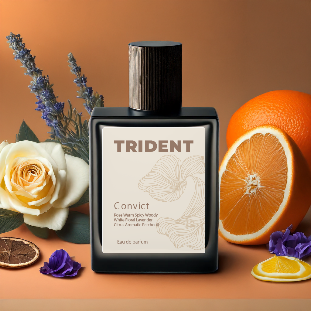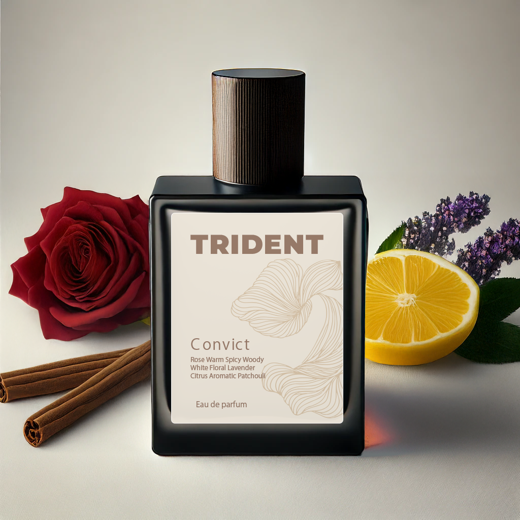 Convict by Trident is unapologetically bold — a rush of pink pepper, bergamot, and peach hits first, sharp and exhilarating. The heart blooms with jasmine, lilac, and citrus, before falling into a smoldering base of woods, warm spice, and patchouli. This fragrance doesn’t just arrive — it interrupts, seduces, and lingers. A perfume made for the ones who break the mold, rewrite the rules, and own every room.